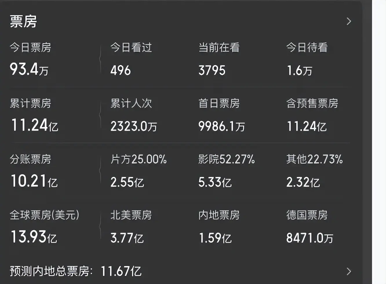 全球总成绩是17.73亿美元,也就是人民币123亿,这个成绩目前是冲进全球影史前十名,再看看《阿凡达3》的成绩吧,虽然电影也达到了13.9亿美元,看着好像也不错,但电影的冲劲已经没有了。